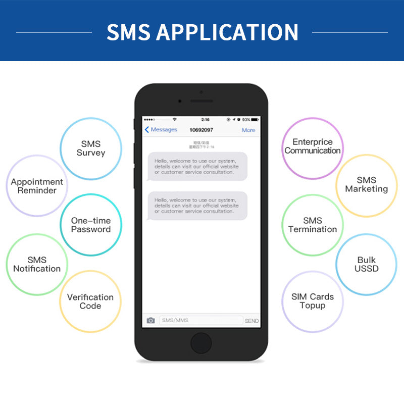 The ACOM6XX Seriesis a powerful SMS gateway hardware that supports 8 to 64 SIM ports and can scale up to 512 SIM cards, making it perfect for bulk SMS sending and receiving. With advanced software and seamless integration, it’s the ultimate solution for Mobile Marketing,Ticketing,Verification Codes,USSD Queries,Notifications and etc.