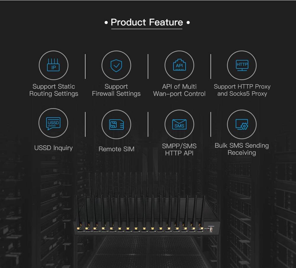 ACOM716 is a proxy router which provide to access internet from different sims and able to send and receive sms